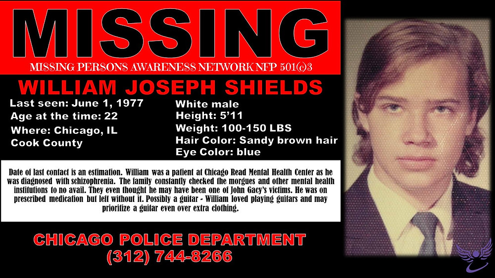 Date of last contact is an estimation. William was last seen in Chicago, Illinois in approximately June 1977. He was on presribed medication but left without it.