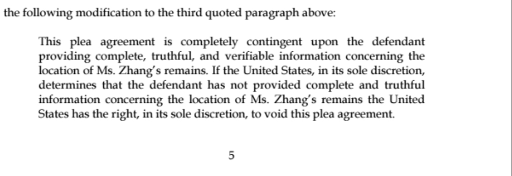 right, I think dm92 spelled this out a day or two ago, that the wording the Defense wanted implied that YY's remains were likely not recoverable in a form that the Prosecution & family would find acceptable, and therefore the plea agreement failed.