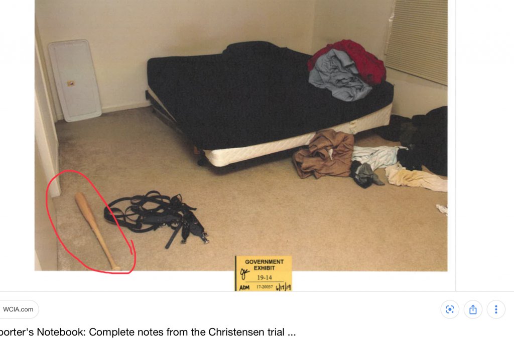 Multiple pictures from the apartment taken by authorities andshown in court included stains on Christensen’s mattress, a baseball bat and leather bondage straps on his bedroom floor, discarded hair from a vacuum cleaner and a knife found in his utility closet.