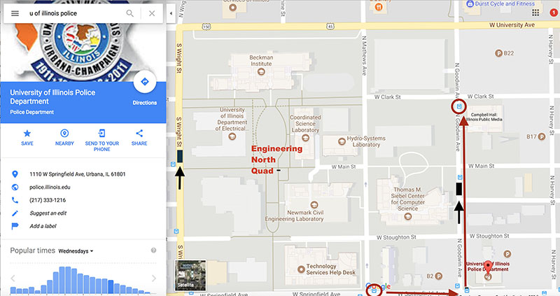 Instead she walked East on Springfiedl to Goodwin, PASSING the U of I Police station. Continued north on Goodwin, to Goodwin/Clark.