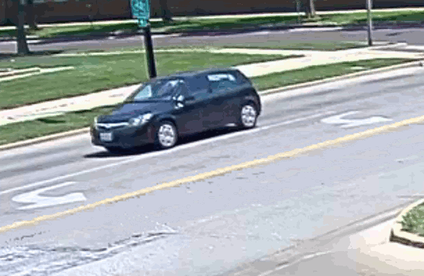 4) I made a quick gif of the car as it's driving (click for full size), centering the car on the image. It made it more clear to me that the blob in the window is the rear view mirror and not her hat. It also makes it more clear that he's looking to the right and slightly down as he drives past. But I still can't make out any trace of YY -- either she's slumped out of view or she blends in too well with the seat.