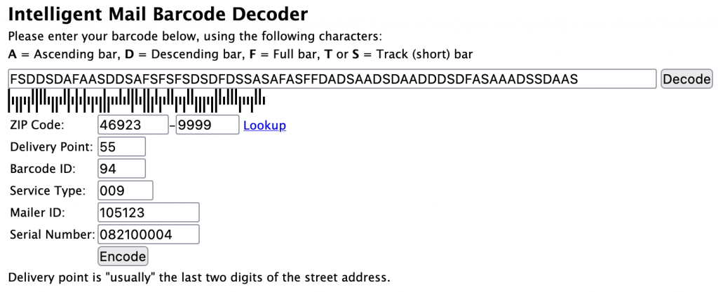 Side note: The new barcode from 11/04 does match the zip code of the Carroll County courthouse when decoded (see attached).