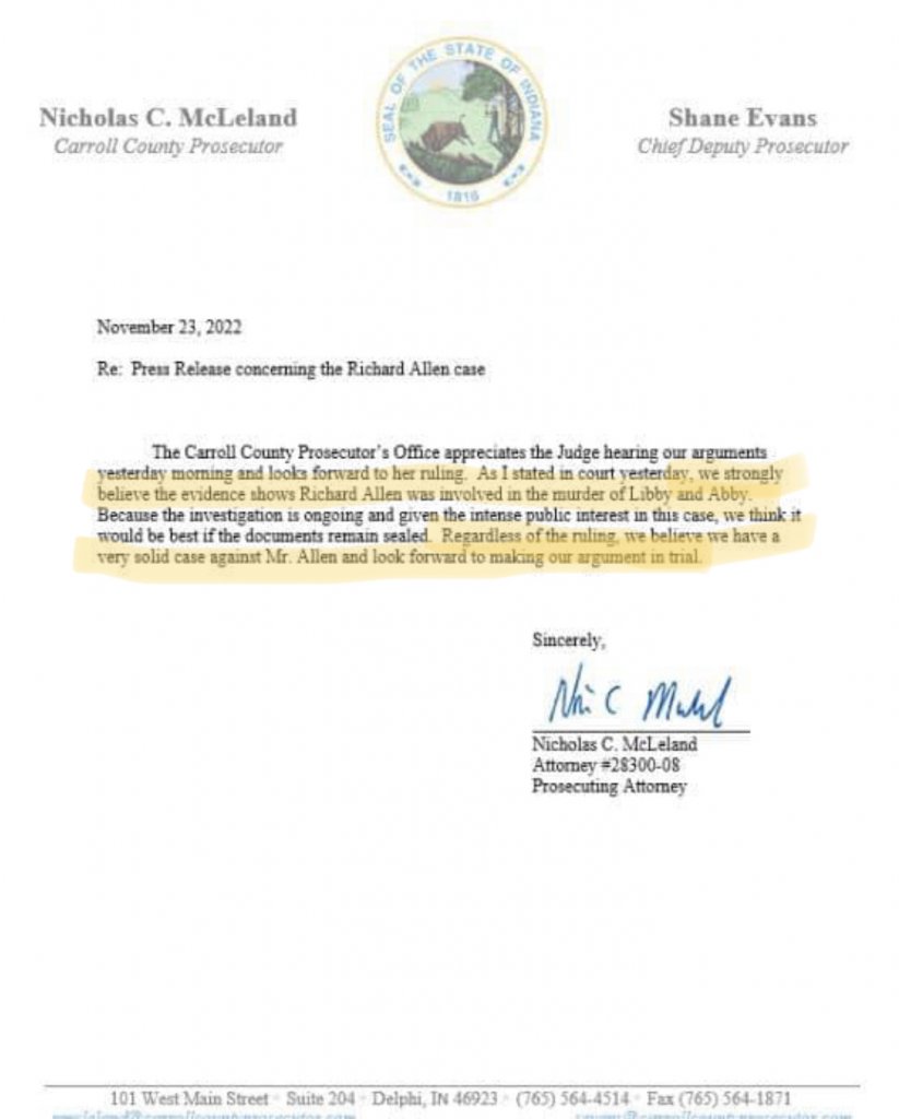 I see nothing wrong, contradictory, or anything like that with the press release, it sticks to saying what any prosecutor would say "our case is strong" plus some of what we already know "we want it sealed and gagged"