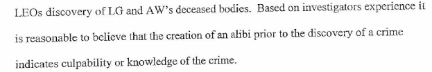 So, IF he told someone he was going to carry a gun to do what he did ("in his waistband", no less)... that person would be in cahoots with him for what went down IMO. Whether that's planning, participating, a receiver of things (pics), or sharing access to Libby via A_S's account. And we all know who that would be. KAK, and possibly RL, since for whatever reason, RL felt he had to ask his cousin to lie to LE about being picked up between 2:00-2:30 which was when things first went down, and before the bodies were even found. I mean, who DOES that?!? Even LE thought it indicated culpability or knowledge of a crime (Top of Pg 5).