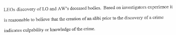 Furthermore, LE thought the creation of an alibi prior to them being found indicates knowledge of that crime.