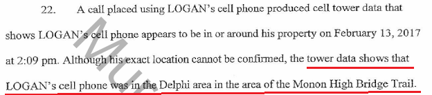 Interesting to me about the call made at 2:09pm was the fact RL's PCA says (1) he was in the vicinity of his property/the bridge at the time that call was made, and (2) he had asked his cousin the next morning for an alibi (before the girls were found) and lie for him and tell LE that he drove RL to Lafayette between 2:00-2:30. That's just.... odd. Sorry but something is up with that IMO!