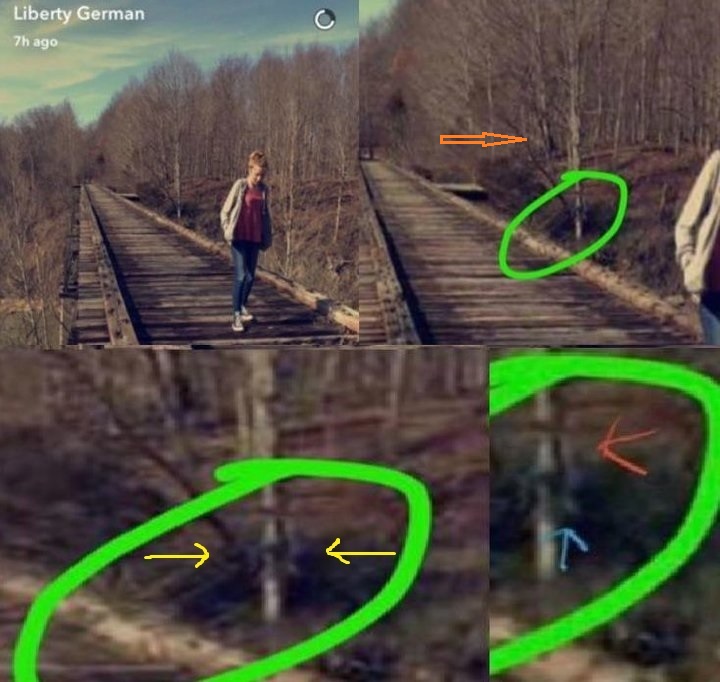 In one of those pictures, if there is a person there, it looks like he is wearing a blue coat. Interesting. I wonder if the twist in this case is that there were 2-3 men that were in on it. One that committed the crime and one or two others who were dressed just like the one who did it to throw the police off. Think about it. If a witness remembers seeing a guy in a blue jacket who was dressed like the guy in Libby's video, it could be leading the cops astray as the man the witness saw was an accomplice and not the murderer. Then the cops have to figure out which guy that was dressed just like one or two other guys, was the one who did it, "beyond a reasonable doubt." MOO