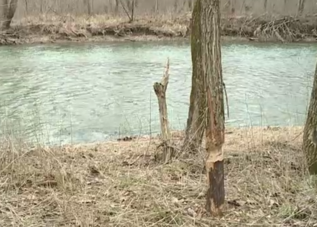 There are beavers in the area. There is evidence of their activity in some other photos and video. Most easily seen is in the WXIN raw footage video I posted a little while back at around the 23 second mark (the view is looking south across the creek which is about 75 feet wide at that point along the creek).