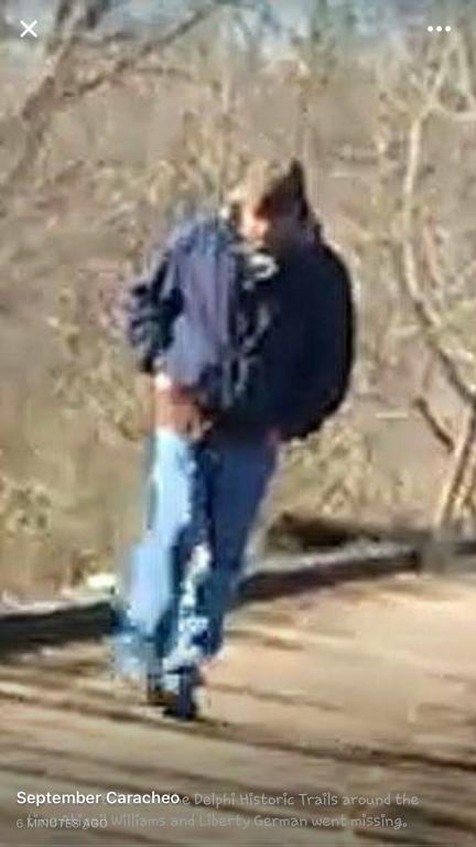 The picture of man on the trestle - looks to me like man wearing ballcap and in blue jeans, a brown shirt with shirttails out and a hoodie under blue lightweight windbreaker. The way the jacket is laying on him it almost appears there is something beneath the jacket in the front. Something that is bulky and causing it to lay funny on him or maybe large items in his pockets causing it to lay like that across his stomach area. Not sure what I think of whatever the thing poking out of the top of the windbreaker is.