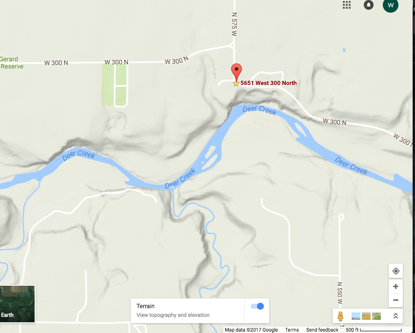 If you save a location to "your maps" you can still access the 'Google terrain' view (which used to be a clickable button) and gives topographic shading...wondering if the girls may have walked the flats to the south of deer creek, crossed at the islands and attempted to walk north to the road where they were intercepted: