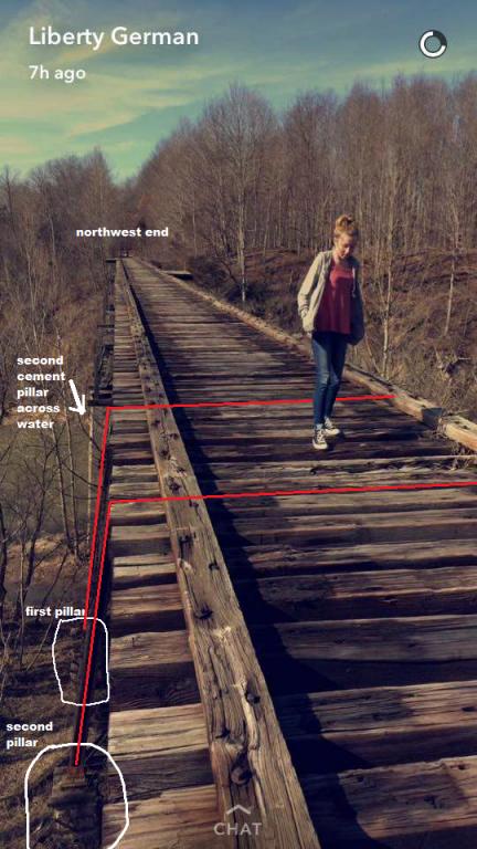 OK yes, there is a road. BUT all those video demonstrations we've been looking at shows that her picture was taken all the way down the other end of the bridge by the water where that road is NOT located. Unless I'm seeing it wrong. LOL Let me see that video again.