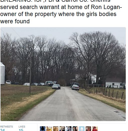 BREAKING: ISP,FBI & Carrol Co. Sheriffs served search warrant at home of Ron Logan- owner of the property where the girls bodies were found