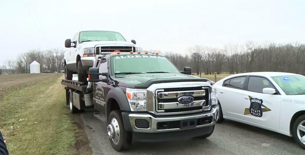 They are flat bedding a white pick up truck from scene according to the photo gallery at this link.