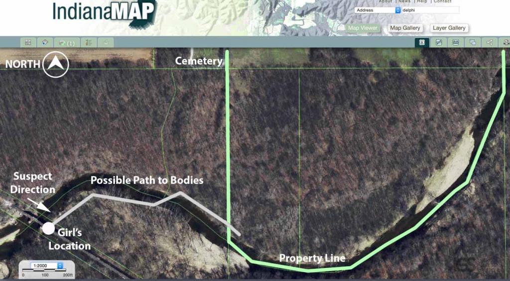 Really, MSM got their map wrong. LE gave a distance from a different bridge not the High Bridge. The helicopter flying over the scene never went that far East. The crime scene tape where the girls were found can be seen in that helicopter video (not easily, but it is there). Worse, even after the media were allowed to go down and shoot video and take photos near the crime scene the media outfit that posted that map didn't bother fixing the location because at that point they would have known for sure exactly where it was.