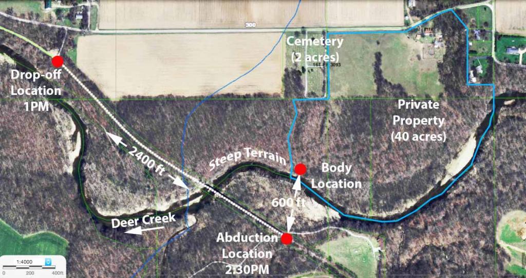 Why is the body location moved so west from where it's been shown in the past?The suspect had two options to get the girls to a location where he would assault (presumably) and murder them. He could force them to walk to that location, or he could injure one or both during the abduction. Injuring one or both would make it much more difficult to get the girls to the murder location. It makes more sense to me that he walked them to where they were murdered. That would also ensure maximum cooperation because up until the time that one was injured, they could both believe that they would live through what was happening to them.