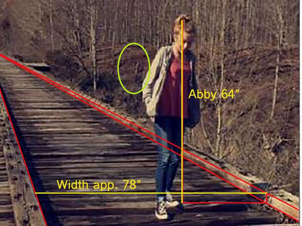 I remember when the pictures first came out. Several people said they thought they saw someone standing by a tree, but most others here disputed it saying he'd have to be standing about 20 feet in the air. I don't remember LE saying anything about someone standing there, only that nobody was at the end of the bridge. I always thought it was by a different tree than the one that's circled - slightly higher and to the left. I knew nothing then, and I guess I know less than nothing now! MOO