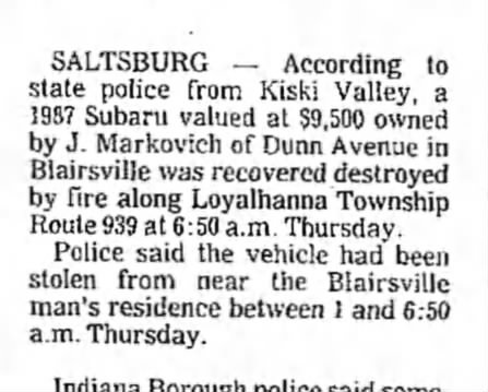 On April 26, 1987, Alicia Markovich left her Windber home to visit her father in Blairsville.