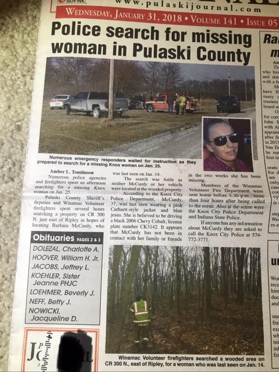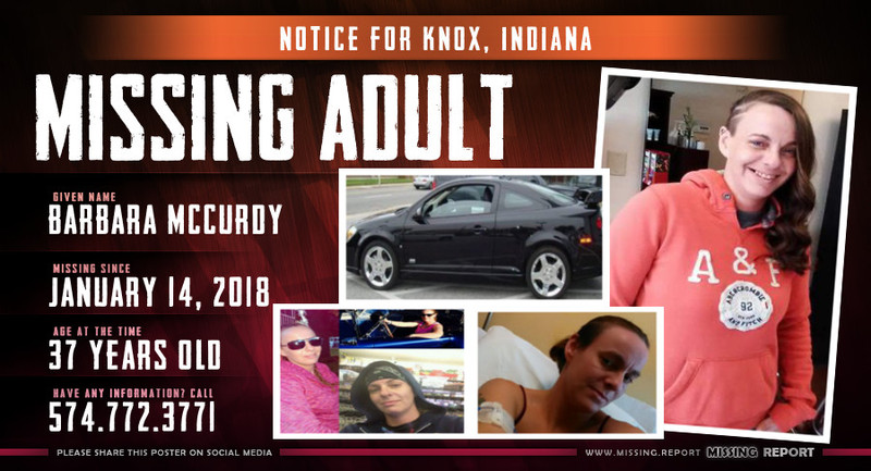 KNOX The missings friend is asking for the publics assistance in locating missing 37 year old Barbara McCurdy out of the Knox, Indiana area.