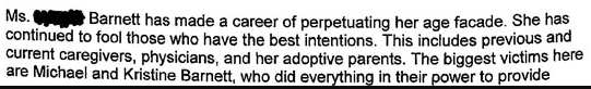 In this article, it is claimed the Barnetts adopted her straight from her biological family, which we know to be untrue. The Daily Mail is living up to its usual standards of reporting, I see.