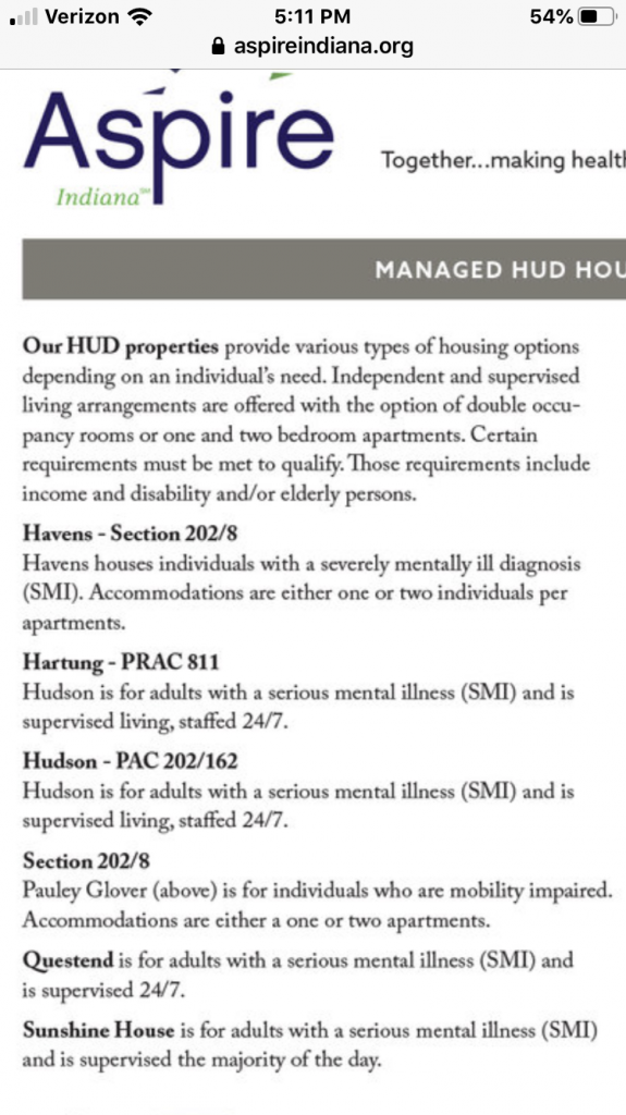 Kristine first said that when NB was discharged from the hospital (this would have been approximately July/August 2012) that she was discharged into a “half way” house. I’m attaching her post to prove these were HER words, not just a reporting of her words). In other reporting, it was stated that Natalia was, after discharge, under the care of Aspire of Indiana. Here is a screenshot of the housing services they provide and it aligns with Kristine’s admission of “half way house.” I think this proves that Natalia WAS NOT truly on her own for a year, before they put her into the LaFayette apt in July 2013. View attachment 210941View attachment 210942
