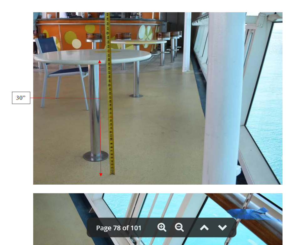 "Winkleman's filing says that during the ship inspection, it was determined that the inside edge of the handrail was 19 inches from the window opening.