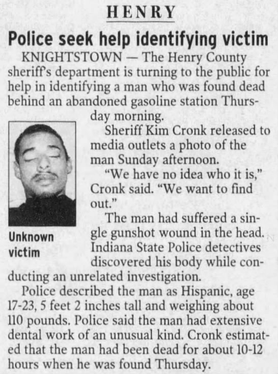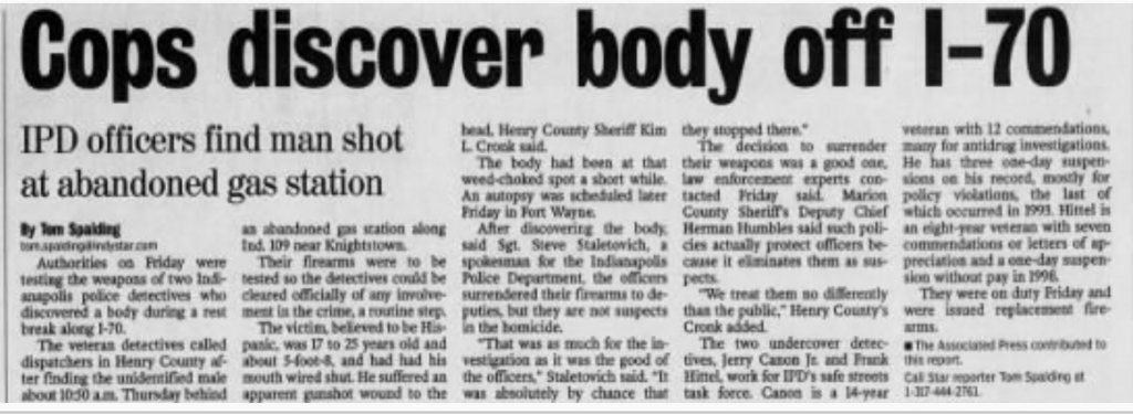 So I live in Indy....so if there is anything I can do or lookup to help out please let me know and I can do my best. I was only 10 in 2003 so I don’t remember this story but it doesn’t mean it wasn’t on the media.