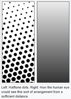 Half-tone patterns are how you get various brightnesses of color (or black) when printing. So the half-tone pattern is a printing induced effect. Then, we a half-toned printed image is scanned by a scanner, there is a chance for what is called "aliasing" which is a mis-match between the size of the scanning elements and halftone pattern spacing (aka. Moire pattern).