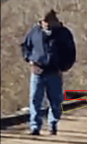 WS, when you look at the three frames, compare or measure the distance between the platform RRT and the leg of the POI/BG. Frame 1 is closest. For frame 2 and 3 look at the planks and notice where the left foot of the POI/BG is in frame 3. Frame 2 shows the left foot up and in the process of getting there (where left foot is located in frame 2):