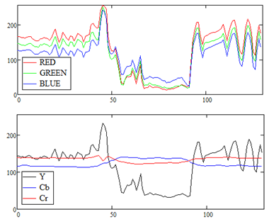 Plotting an x-profile of the RGB and YCbCr values to convince myself. I agree with both you and my office neighbor.