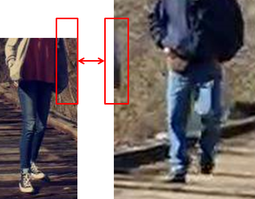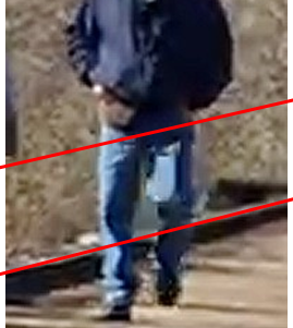 Good point. If some person was walking in front of BG, but equidistant from the sides as BG, the bottom of whatever the blue feature is seems consistent with the bottom of BG's sleeve. Is this what you saw also? I drew a line along the bridge side indicating the forward motion along bridge direction.