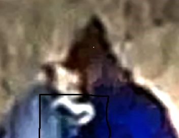 Awhile back I stuffed a white plastic bag in my jacket (first I sort of stretched the handles so I would replicate a well used bag). Then I pulled it through the top of my jacket a bit and took a selfie. It looked EXACTLY like the BG pic. I hate my face so I won't post it, but if anyone wanted to do an experiment with different things, I recommend it. Just be sure to stretch the handles or use an old bag. I would also try it with goggles, scarf and whatever else people think.