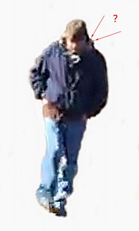 Hi! It is my belief that the white loopy thingy is sticking out of his jacket. I posted pictures a few pages back but here is one anyway. The more I enhanced the photo the more pronounced it became which solidified my belief. jmo, of course.:fence: