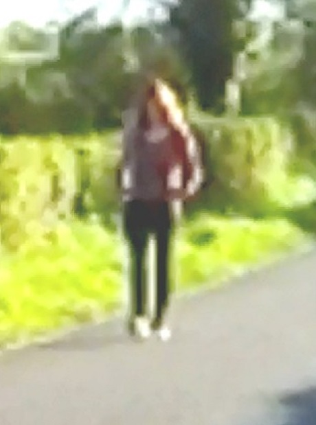 Next I cropped the still that I grabbed, zoomed in even further and enhanced it the best I could. This close up is much better and more detailed but very blurry. You cannot see my daughter's facial features but can certainly see it's a female, hair length and color, clothes type and color, and body lanuage. I don't know all the reasons why my stills might have come out so much worse the Libby's but it could have been my phone. I used a Samsung and we now know that Libby had an iphone.