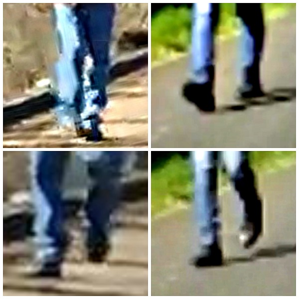 Hi BoP and others who have been trying to answer questions regarding whether the soles of BG shoes can be seen in these photos. I grabbed some stills from another experiment video showing DD's similar feet positions while walking.