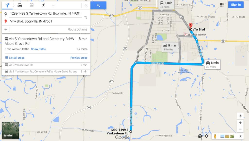 Not sure I did this right. VFW to the area her car was found. I just put the destination as Yankeetown/Huffman.