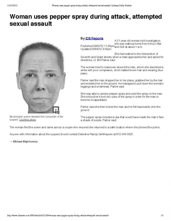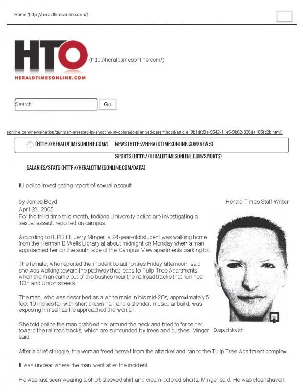 I think there may be a link between DM and Lauren, and possibly Marina Boelter. First, I search the archives of the local Bloomington newspaper, the Herald Times, and the IU newspaper, Indiana Daily Student, for articles related to sexual assault reports between 2000-2012, and focused on the ones with police-generated composite sketches. Check out the following 3 sketches, they all seem to look like it's the same person assaulting women between 2005 and 2012: Sexual Assault 4.23.05_Page_1.jpgAttempted Abduction 7.3.08_Page_1.jpgSexual Assault 9.3.12.jpgMessel mug.jpeg