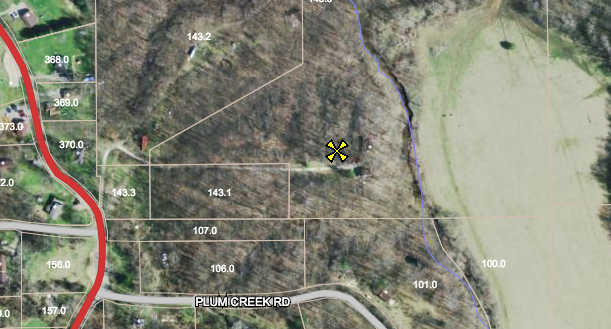 The huge field to the east has actually been the location of an annual music festival (Needmore Hootenanny -https://www.facebook.com/needmorehootenanny), until it seems they ran out of funds/interest a few years ago. That location and the property with the abandoned house is separated by Plum Creek (the actual creek that the road is named after). It's hard for me to believe that a bunch of music lovers/hippies would have anything to do with the junk strewn throughout the adjacent wooded area, trash piles under tarps, or destroying the abandoned house.