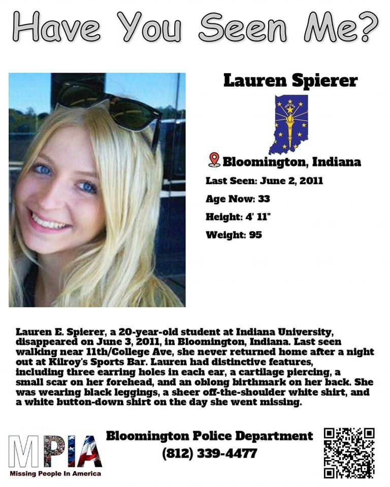 'Lauren Spierer was a 20-year-old sophomore at IU when she vanished after a night out with friends in Bloomington on June 3, 2011.'