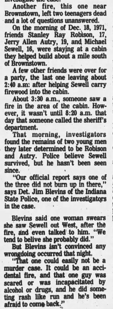 The case involves a mysterious cabin fire that happened Dec. 18, 1971, roughly a mile and a half south of Brownstown on State Road 135.