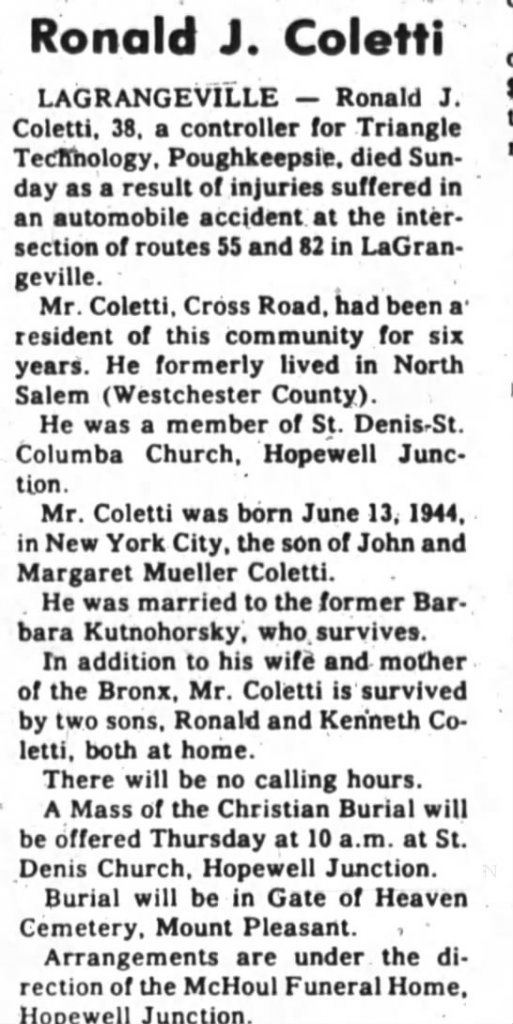 Not a lot more information, just good to note that Ronald J Coletti son is Ronald S. Might help when there isn’t a birthdate available.