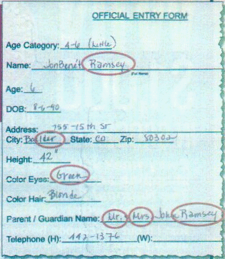 Something that has always bothered me about the hand writing samples is that the ransom note uses a different style of the letter "a" than Patsy used in all subsequent samples that she provided. The note uses "a" and Patsy always used "a" style. But, in the link UKGuy provided there is a pageant entry for that conclusively shows that she used the "a" style