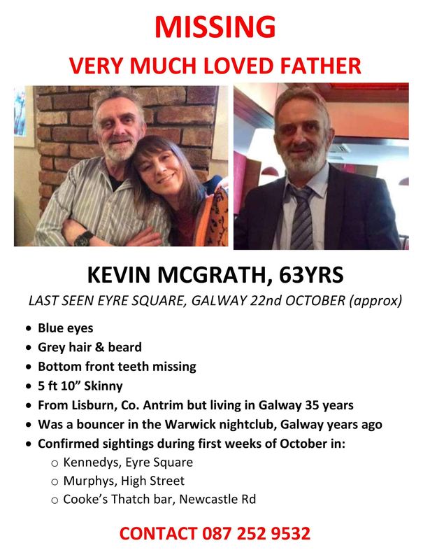 Kevin McGrath is missing from his home in Rahoon and was last seen in Eyre Square in Galway city centre on October 27.