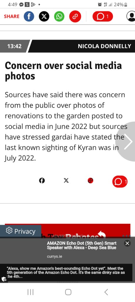The only speculation I can see on SM and the public domain is about kyrans mother and grandmother and i feel in their case its a fair judgement for people to opine. as of their guilt in either neglect, cover up or murder .An Garda Síochána says its is aware of ongoing extensive public commentary on this investigation, including speculation, rumours and theories on what may have happened to Kyran, most of which is inaccurate and misinformed. An Garda Síochána says such ill-informed public commentary is not only disruptive to the Garda investigations but also adds to the trauma experienced by victims families.