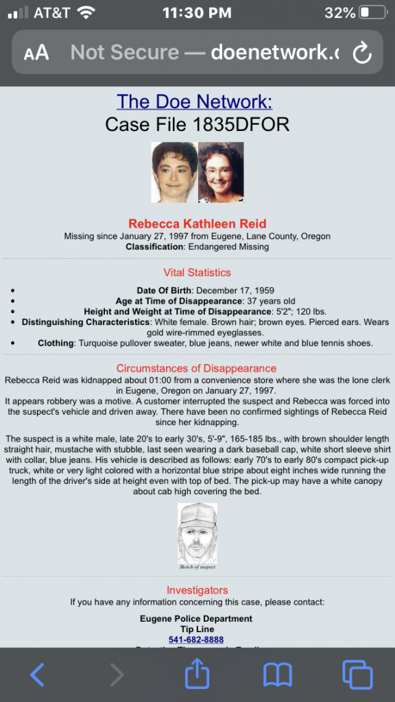 Do think they’ve investigated him for the disappearance of Rebecca Reid. Similar to his final crime, kidnapped and robbed the store...the sketch of the suspect is eerily similar to his look when he robbed the bank.