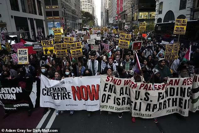 "Pro-Palestinian protesters storm the New York Times building, vandalizing the façade -