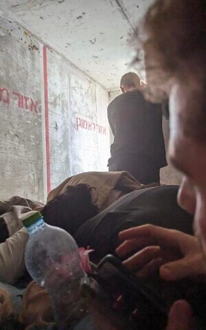 Staff Sgt. Aner Elyakim Shapiro is seen at the entrance to a public bomb shelter near Re’im, as Hamas terrorists hurl grenades inside. (Social media: Used in accordance with Clause 27a of the Copyright Law)