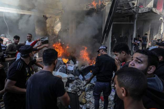 These pictures have reached us from Getty - showing the aftermath of a strike on buildings around Rafah, in the south of the Gaza Strip.
