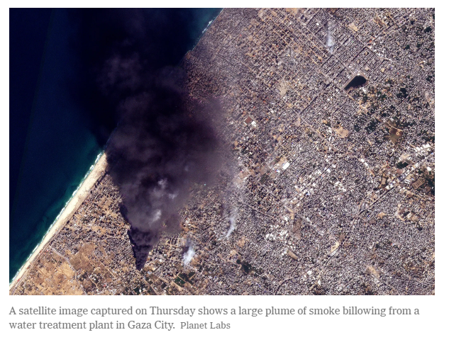 Satellite imagery shows a water plant in Gaza City burned down amid a dire water shortage.