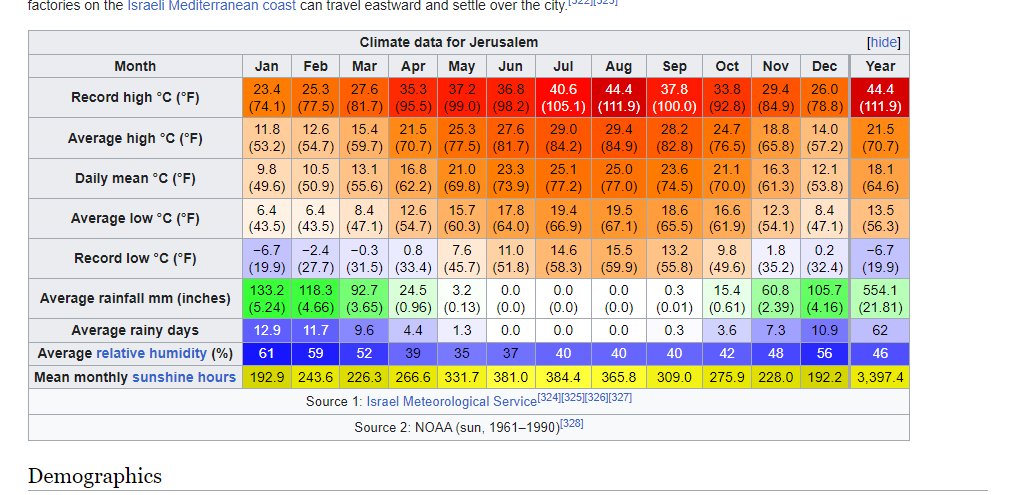 Jerusalem averages 21 inches of rain annually. (Desert is 10 inches)