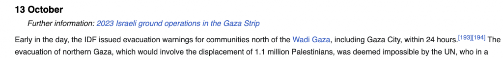 screenshot from wikipedia timeline 2023 Israel–Hamas war - Wikipedia